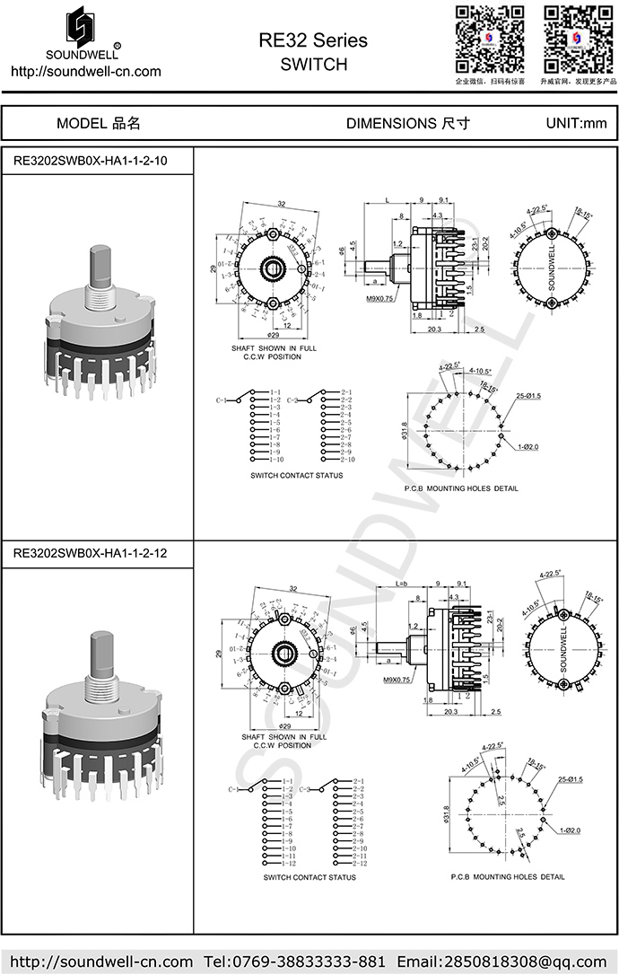 | 主要规格: | 额定功率:DC 30V 0.3A; 接触电阻:50mΩ Max ; 定位点数:2~12 个; 工作温度:-10℃~70℃; 旋转寿命:10,000次以上; |