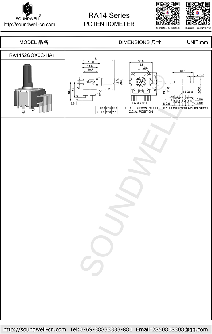 产品特点: 产品密封性好,耐焊性佳,旋转手感柔和、顺畅,性能稳定,轴心形状及 长度、安装方式可以选择,还可做带定位。