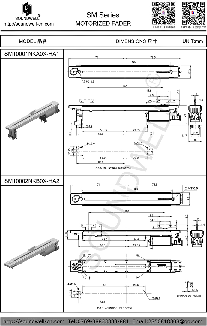 直滑电位器优点:该产品可通过马达驱动使推柄自动来回滑动与停止,在马达驱动过程中可通过手触摸推柄使产品停止,还可以配合软件实现记忆保存及读取。