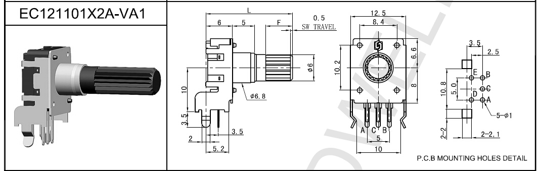 ec12编码开关特点:体积较小、密封性好、性能稳定,绝缘轴柄,可以带按压开关功能,有多种不同的规格可选择。