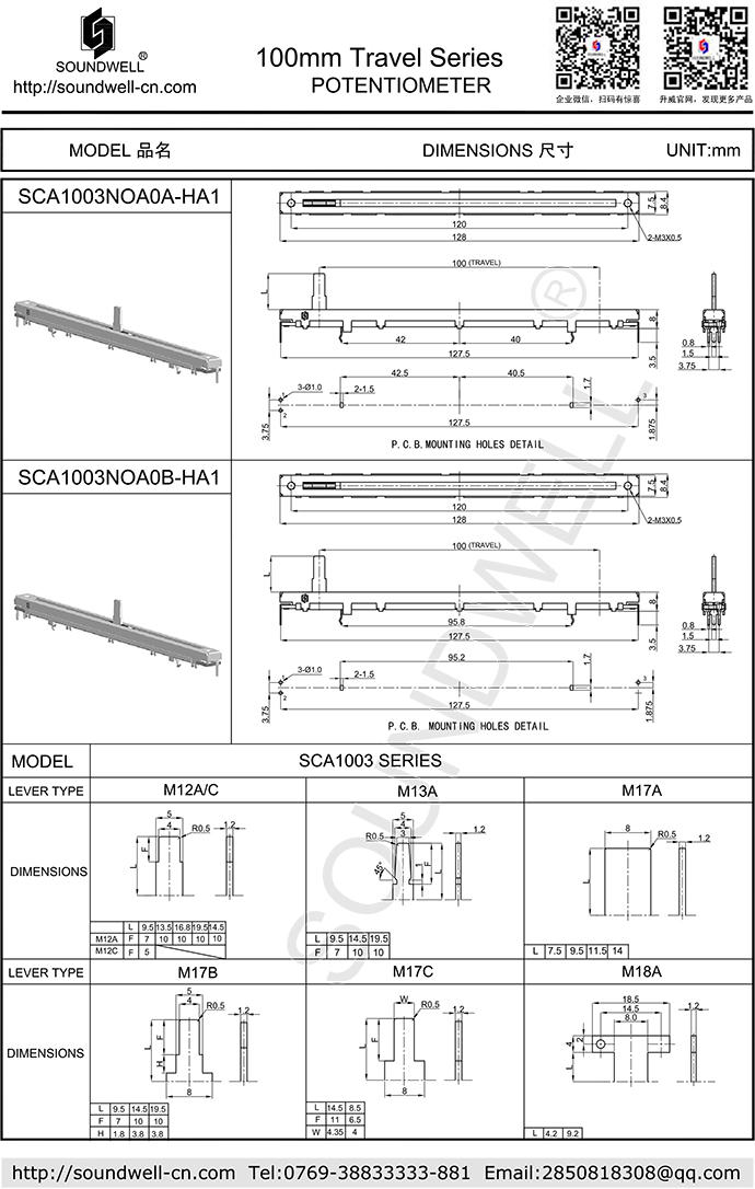 Name: 100mm Travel Slide potentiometer