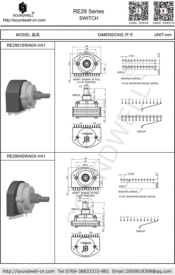 | Main Specifications: | Rated power: DC 30V 0.3A Contact resistance: 50mΩ Max Number of positions: 2~12 Operating temperature: -10℃~70℃; Rotational Life: 10,000 cycles Min; |