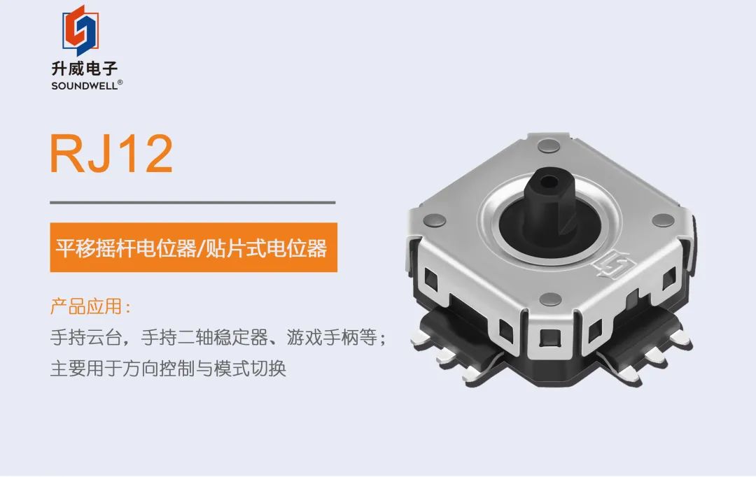 今天,我们来介绍SOUNDWELL的这款应用于手持云台,手持三轴稳定器的平移摇杆电位器——RJ12。