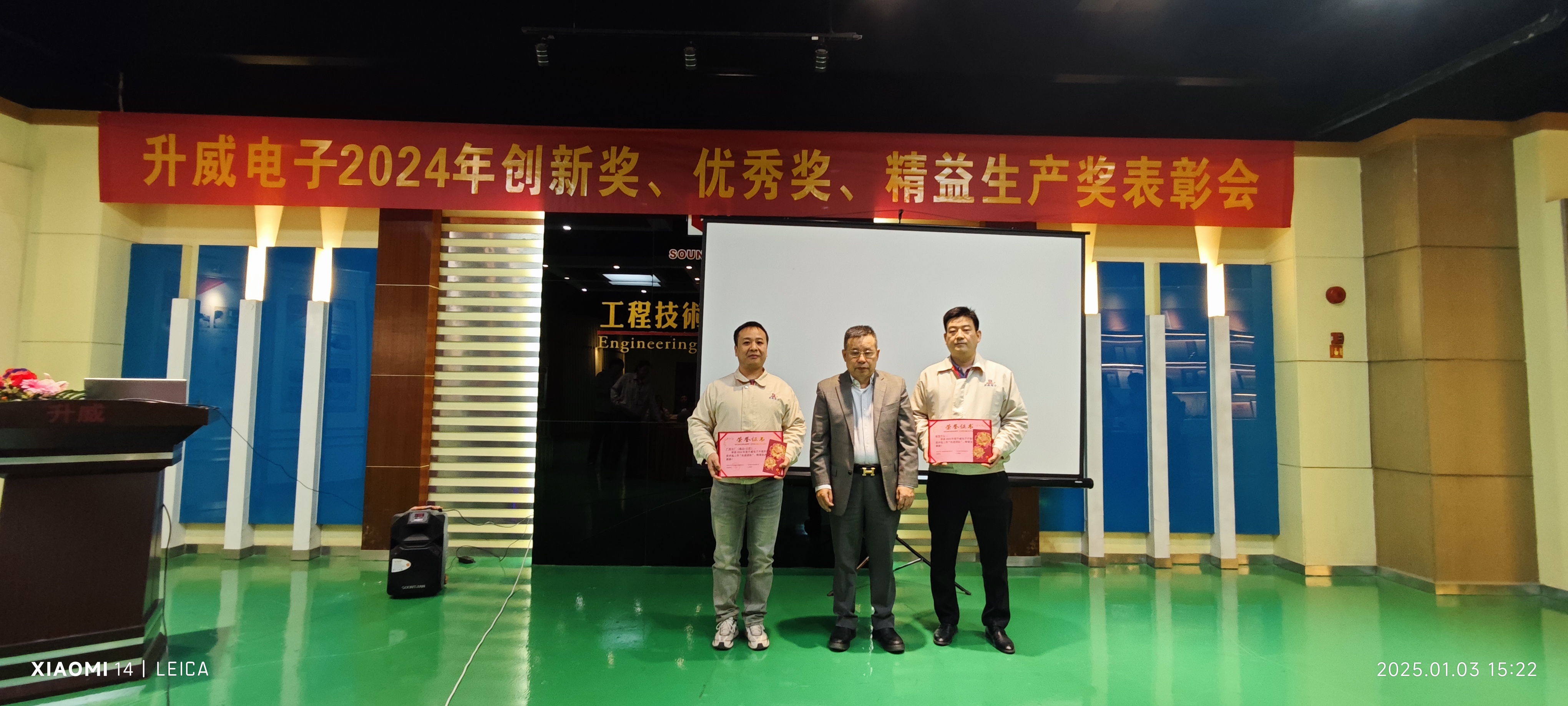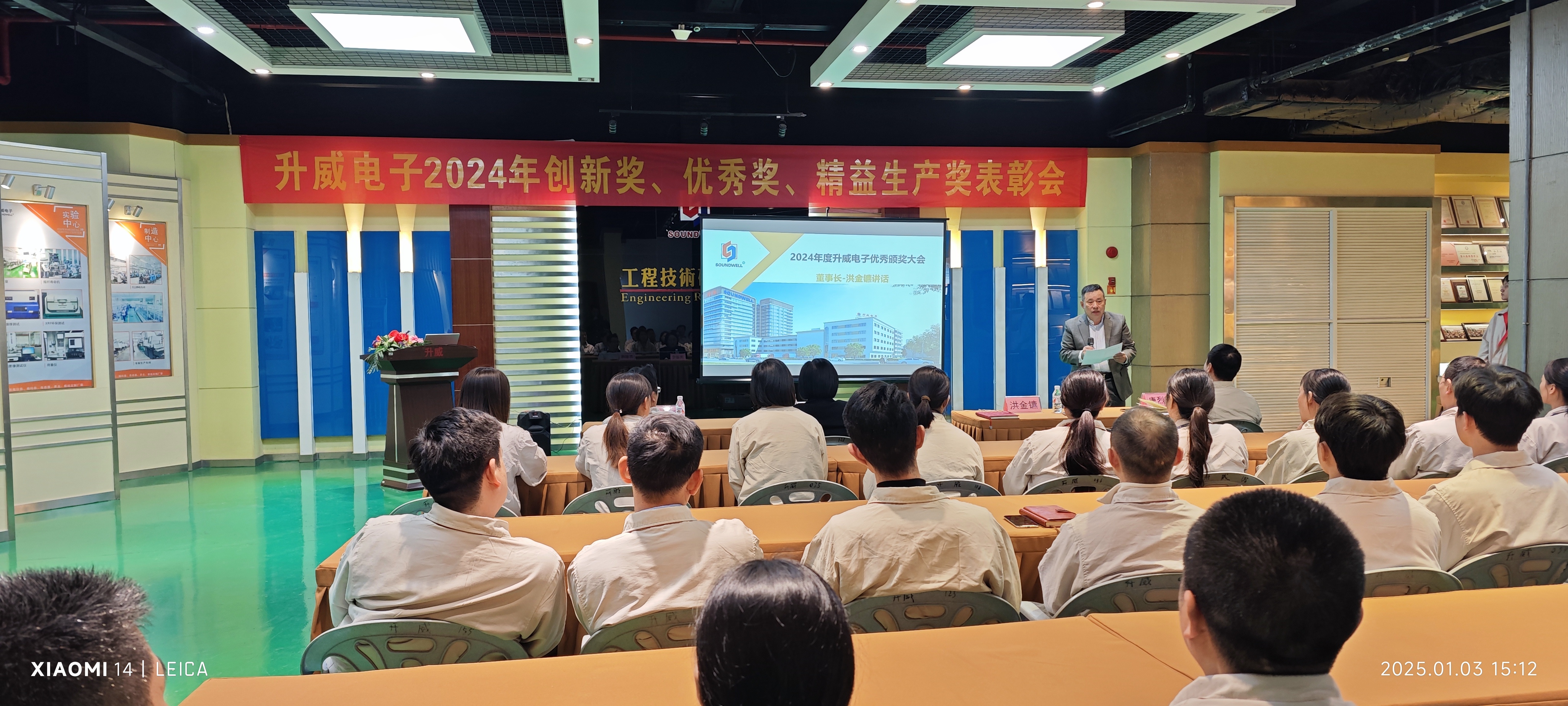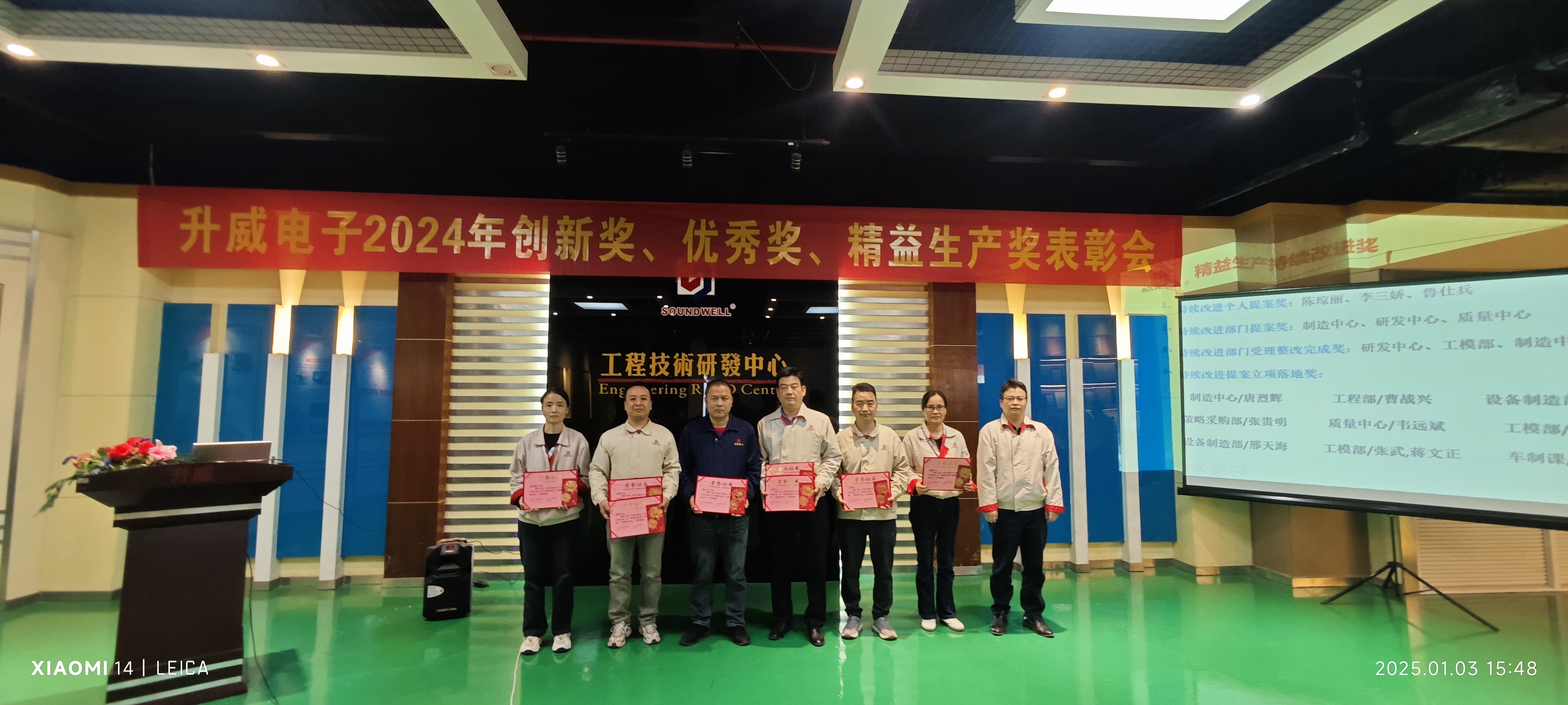 为在全公司营造“积极、向上、进取、奉献”的工作氛围,激发升威人主人翁精神,不断创造新的成绩。2025年1月3日,升威电子举办2024年度评优评先表彰大会。以表彰创新人才、优秀个人以及优秀部门,并设置优秀部门奖、创新奖、精益生产奖、优秀劳动奖等四大奖项。