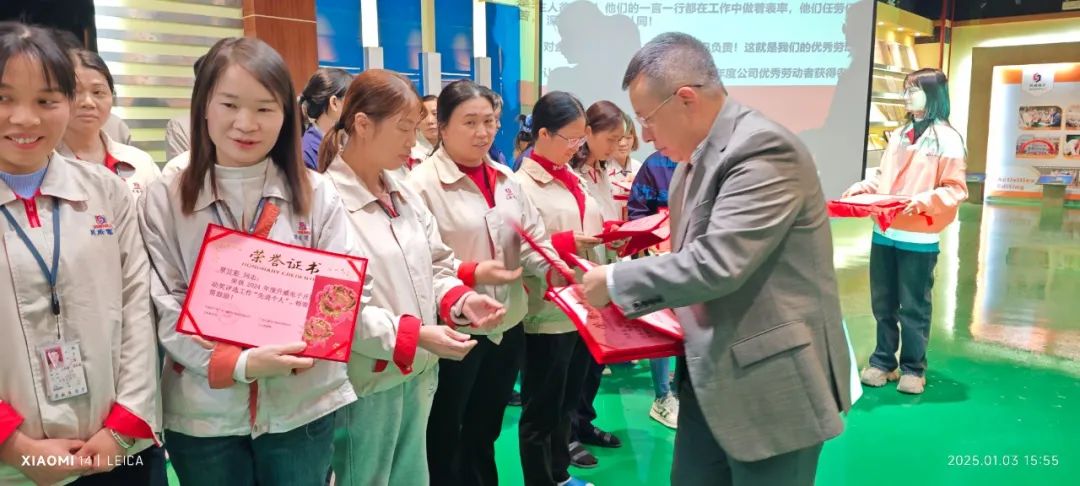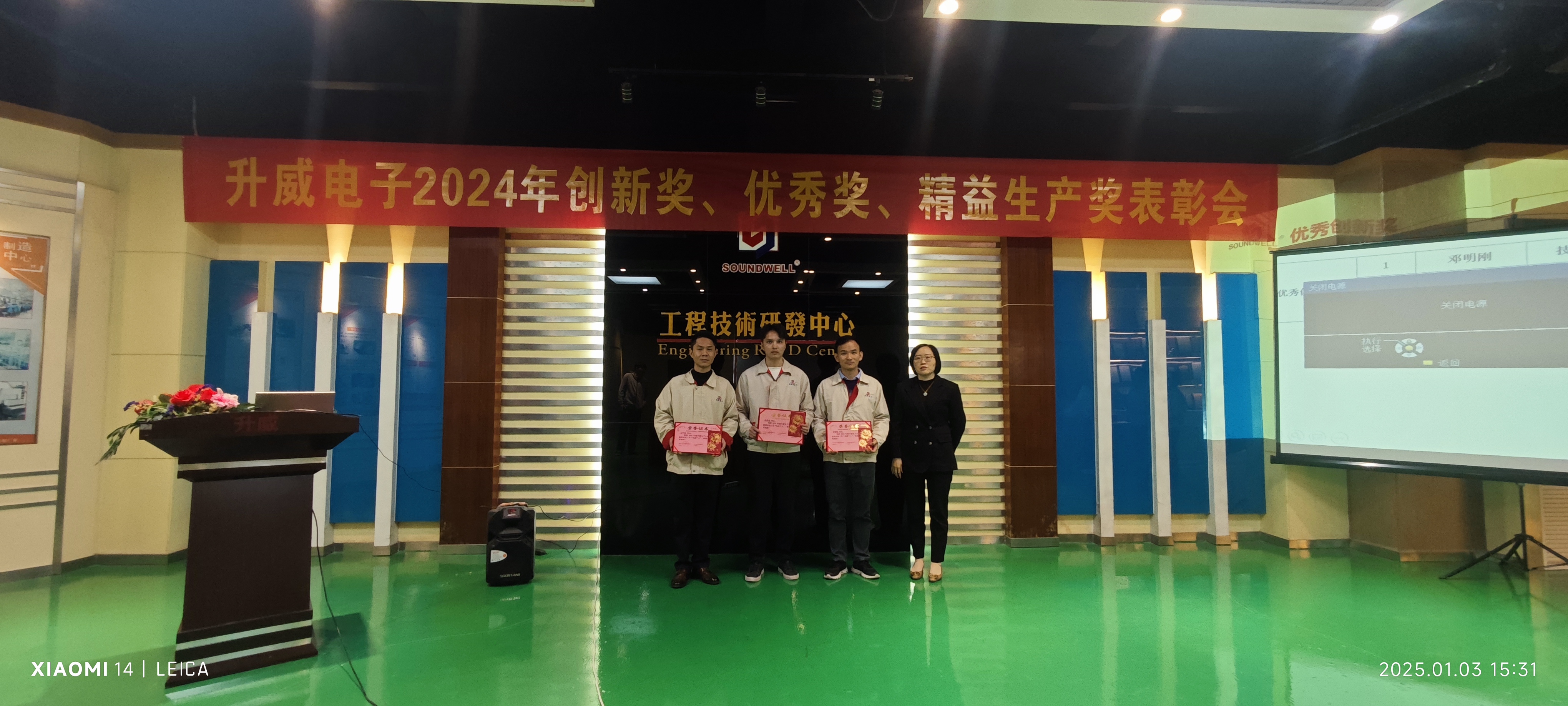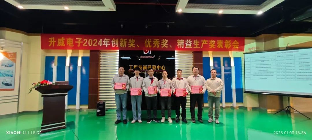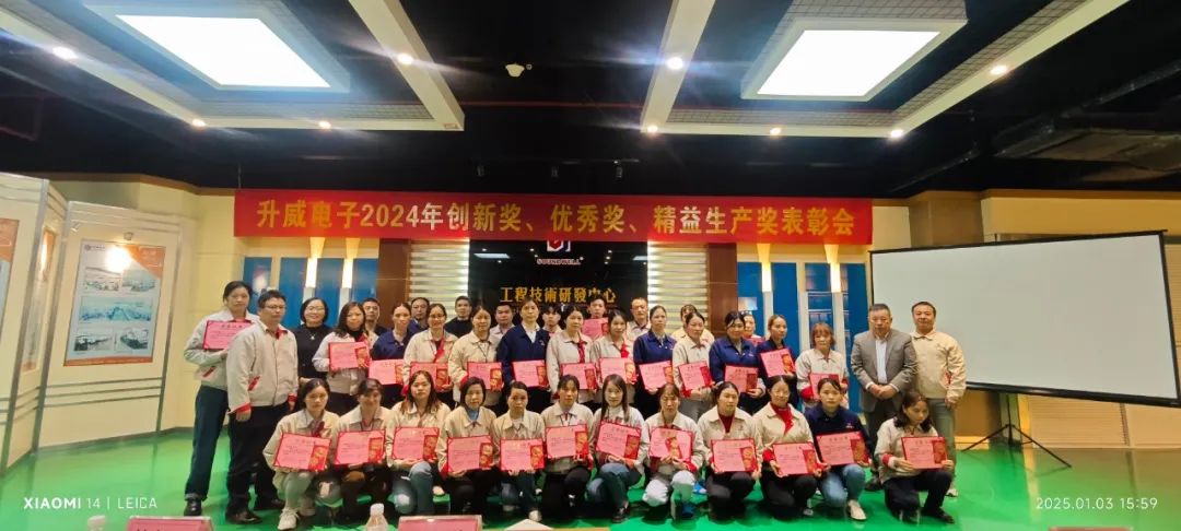 为在全公司营造“积极、向上、进取、奉献”的工作氛围,激发升威人主人翁精神,不断创造新的成绩。2025年1月3日,升威电子举办2024年度评优评先表彰大会。以表彰创新人才、优秀个人以及优秀部门,并设置优秀部门奖、创新奖、精益生产奖、优秀劳动奖等四大奖项。