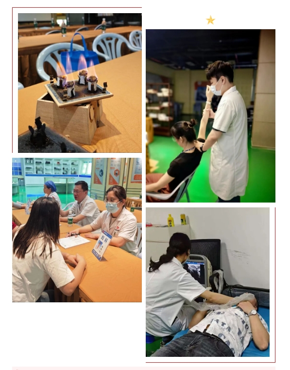 今日邀请了莞华医院的中医科、外科、妇科、功能科等医护团队为我们有健康需求的同事面对面问诊,并安排了血压、血糖、B超查检和中医艾炙体验。