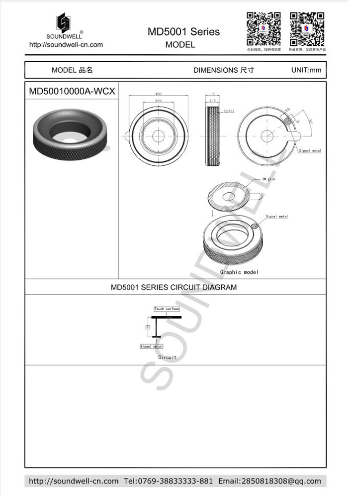 | 产品特点: | 直接贴在客户屏幕上通过IC来识别旋钮感应片位置的变化而产生信号,再通过软件 实现递增或递减起到调节的作用。定位手感顺畅,寿命长,外表美观。 |
