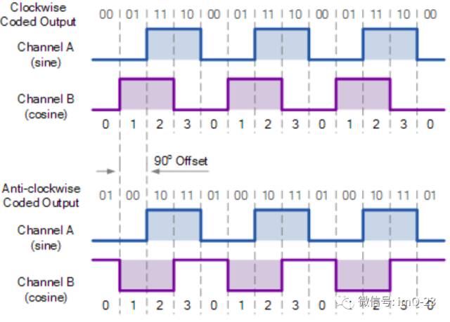 而旋转编码器就是要把当前的角度信息或旋转的角度变化信息“编码”送出。