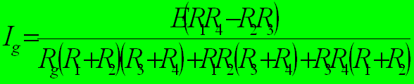 若电桥的负载电阻Rg为无穷大,则B、D两点可视为开路,上式可以化简为