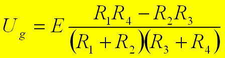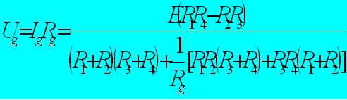 R1R4=R2R3时,Ig=0,Ug=0,即电桥处于平衡状态。